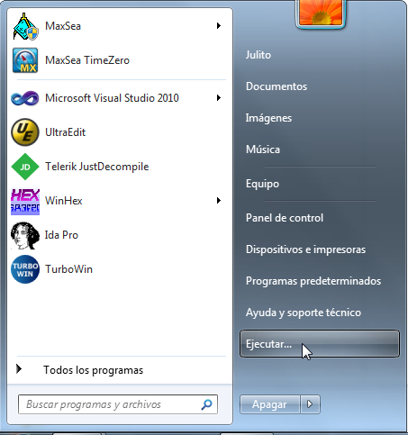 en el menú de inicio el comando "Ejecutar", solo para W7, en el XP ya lo ves, vamos a ello.